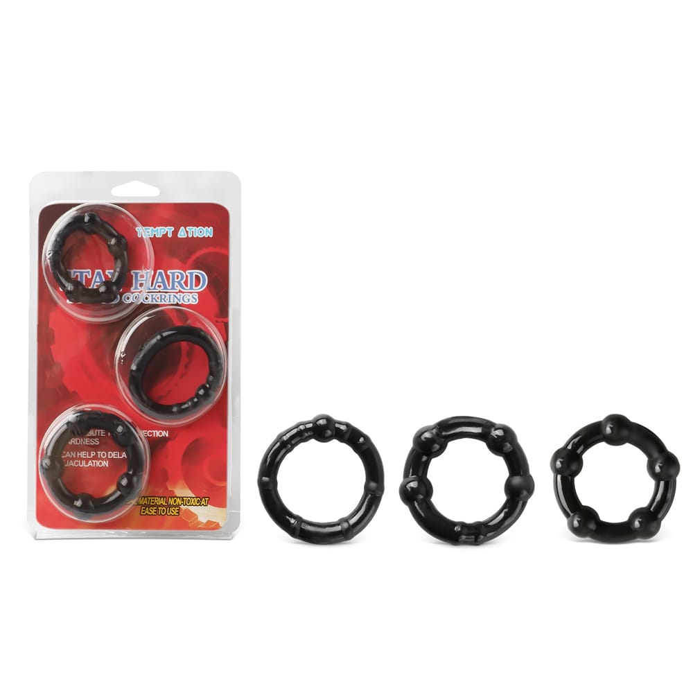 Turn up the intensity with this trio of sleek black enhancer rings. Crafted for endurance and designed to maximize pleasure, they provide just the right amount of pressure to keep you performing at your peak. With these, every moment lasts a little longer, and the pleasure just keeps building.